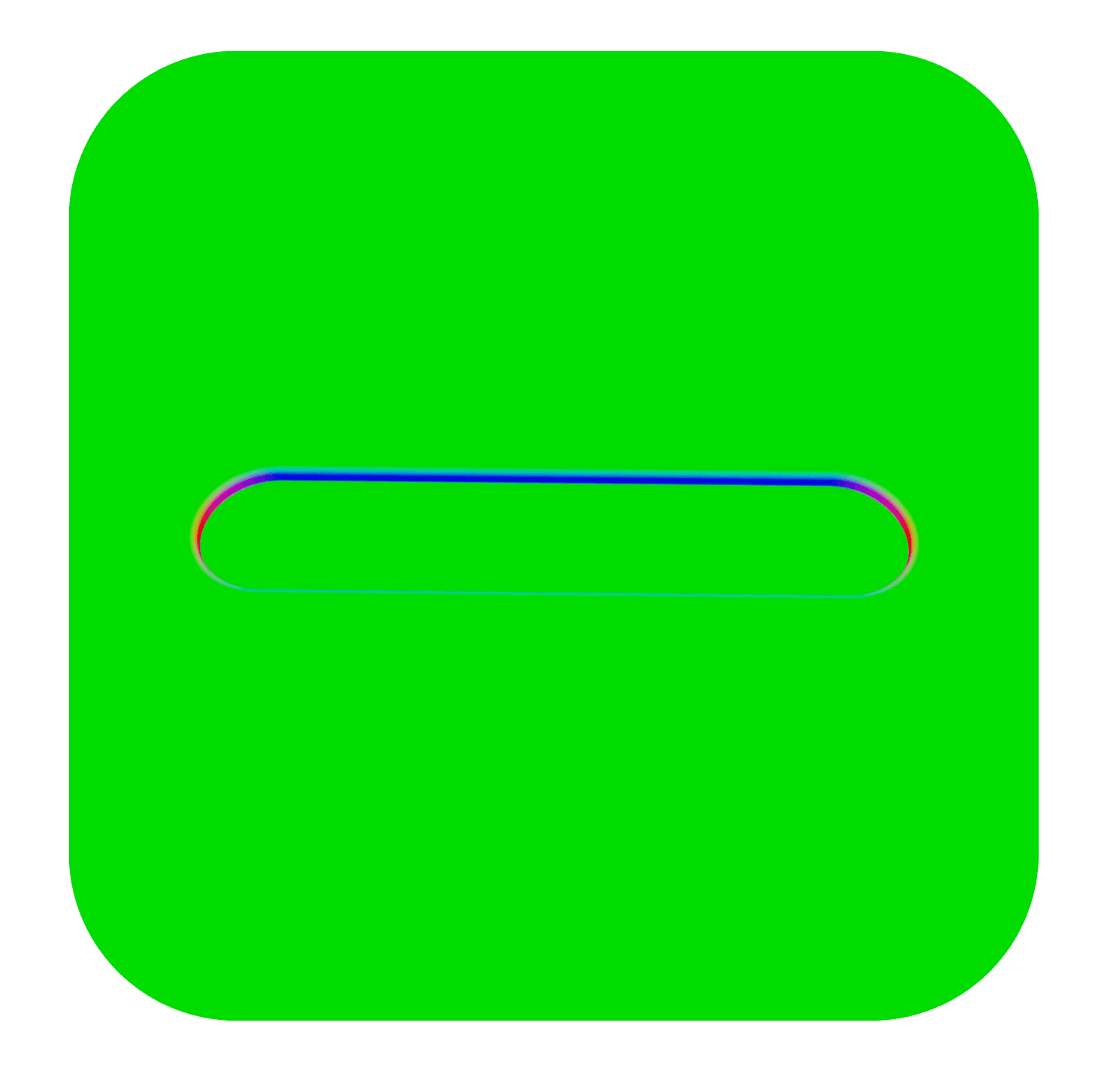 This will produce a slim rounded rectangle floating in space — but that’s not what we need, we actually need the opposite since it’s supposed to be a cutout. Thanks to the nature of SDFs, it’s as simple as flipping the sign on the rounded‑rectangle function.