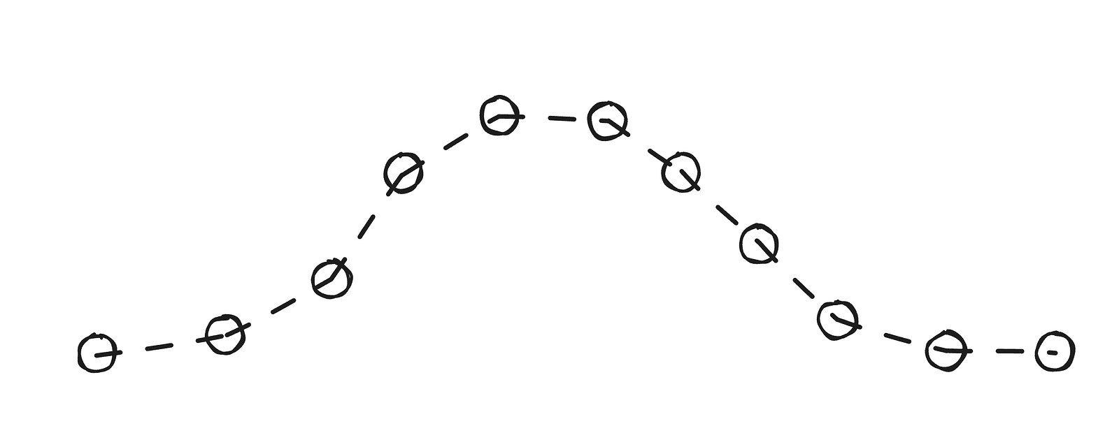 As mentioned earlier, the integration relies on the current position, previous position, and small adjustments over time. Apart from applying a varying arching force, we also need to enforce certain constraints. If we only applied the force, the points would drift away, and the result wouldn’t look stable.