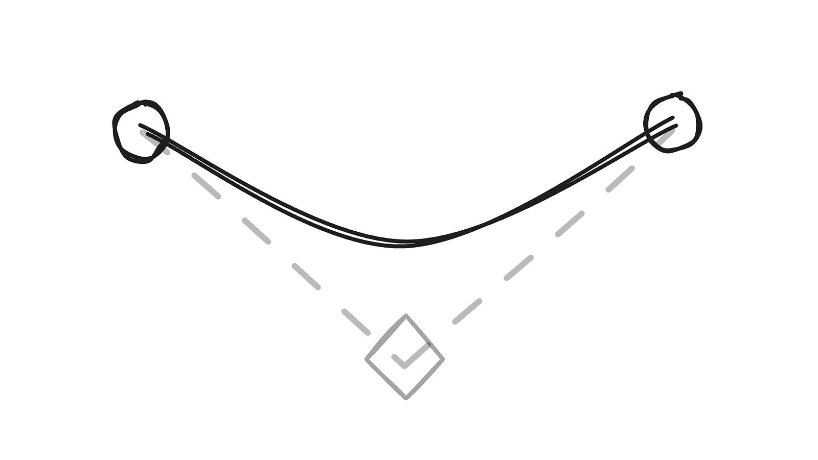 There’s one edge case we need to handle for this method to work reliably. When the tangents are parallel or nearly parallel, the control point either doesn’t exist (the lines never intersect) or ends up far from where it should be. Fortunately, this is easy to fix — in those cases, we simply place the control point at the midpoint between the two points.