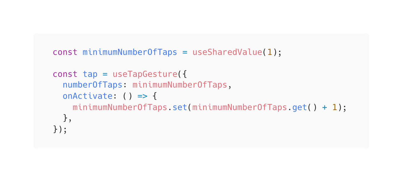 To adapt to today’s environment, we had to make some changes, the most notable of which is the new hook-based API, which is compatible with React Compiler. This introduces a conceptual shift compared to previous implementations, where the gesture lifecycle was fully managed by the component it was attached to. In the new API, gestures are managed entirely using hooks, and components are responsible only for attaching them to the correct views.