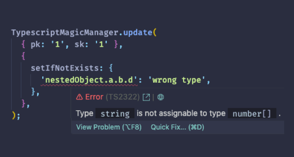 UpdateExpressionandConditionExpressionare plain strings. One typo, and you've got a faulty database query that's a nightmare to debug.ExpressionAttributeNamesandExpressionAttributeValues, those special properties add another layer of complexity.- No type safety & no validation for the models entering the database 🙈