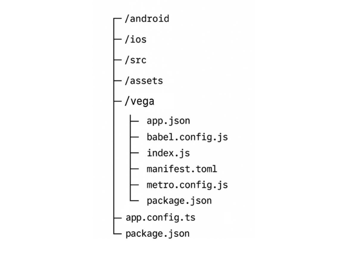 Vega apps need to be built using React Native’s bare workflow. This workflow gives developers full control over the app’s configuration and build process, exposing the native project structure, but it also requires manual setup. Unlike managed workflows like Expo, the bare workflow doesn’t abstract platform-specific settings; something essential when integrating with system-level components, as in the case of Vega apps.