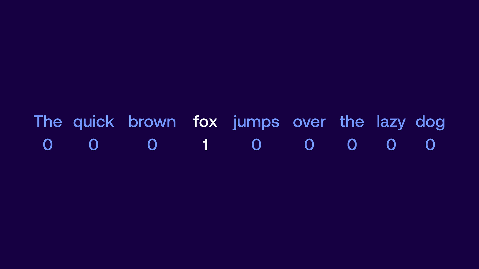 Unfortunately, computers don’t simply understand written words. In order for the LLM to process them, we need to represent them as numbers (more precisely — as vectors, which is math lingo for a list of numbers). Given a list of n words, the simplest way to represent them is as one-hot encoding. The token is represented by a vector which consists of all zeros and one on the position of the token. For example, if our tokens were “The”, “quick”, “brown”, “fox”, “jumps”, “over”, “the”, “lazy”, and “dog” we could enumerate them and token “fox” would be represented as a vector [0,0,0,1,0,0,0,0,0].