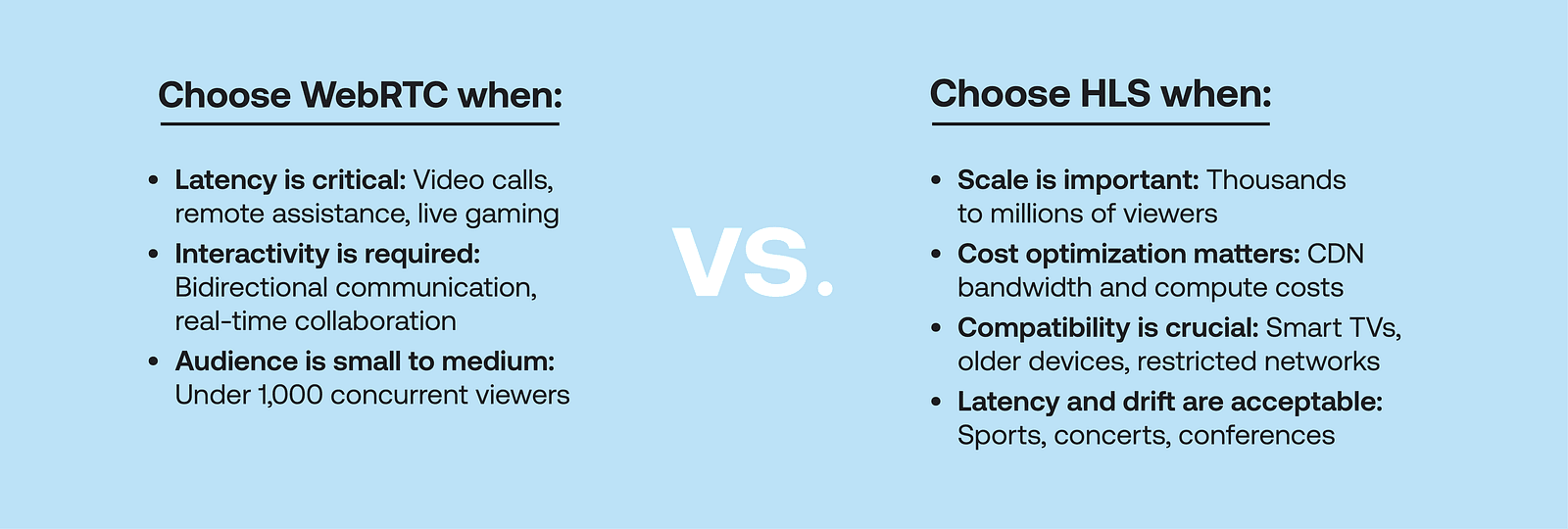 What to consider when choosing between WebRTC and HLS?