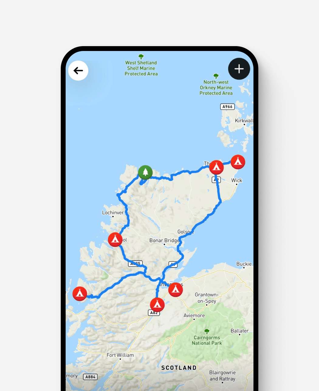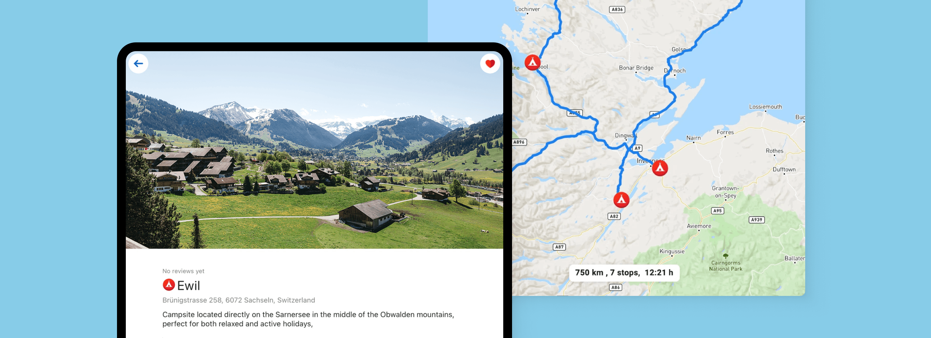 - Camper navigation – we integrated Mapbox’s API, letting users input their vehicle’s dimensions to get custom routes that avoid unsuitable and unsafe roads.