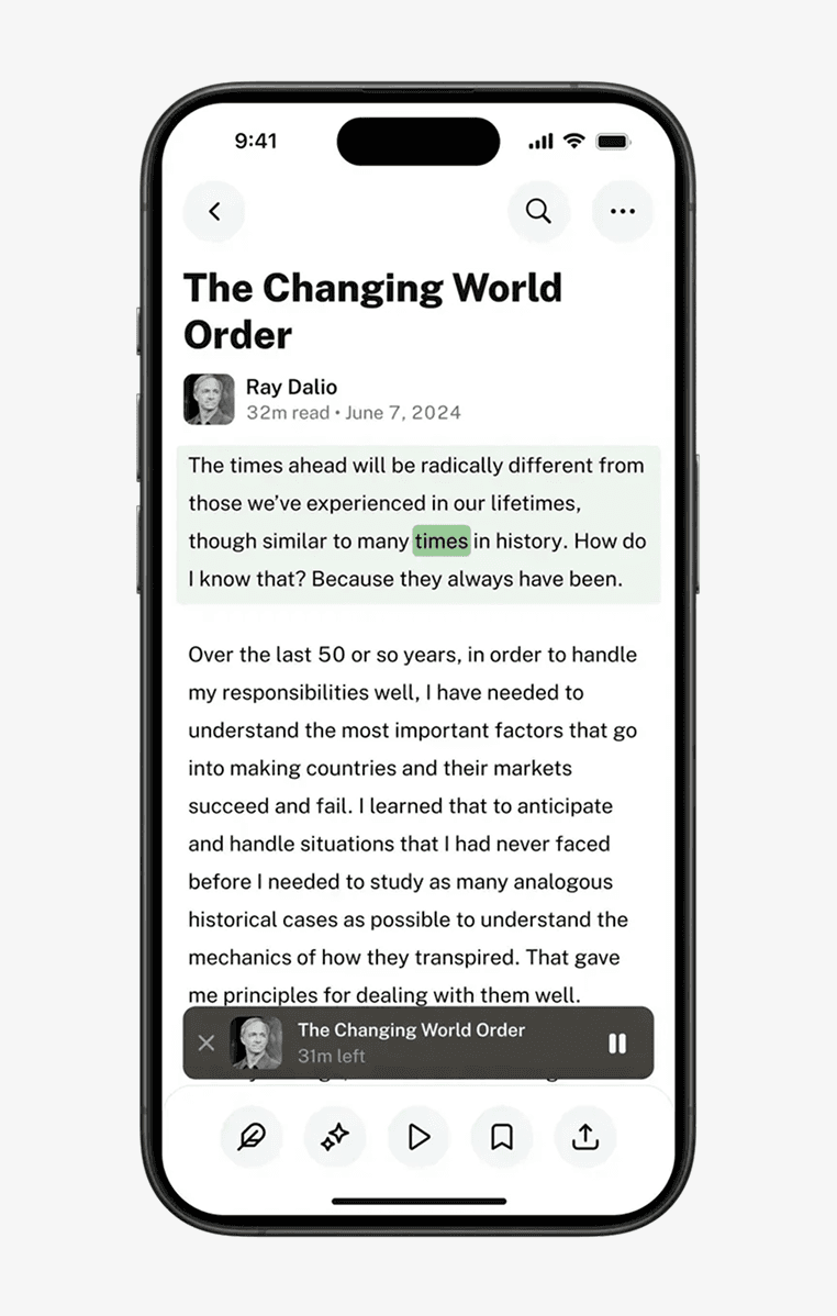 But the improvements didn’t stop there. To help users save interesting words or passages to revisit later, we introduced custom highlights. They allow users to mark meaningful sections, while precise progress tracking ensures they can resume reading or listening exactly where they left off. The player is also resilient to connection drops: buffered audio continues uninterrupted, and playback automatically resumes when connectivity returns. This allows users to not only pick up where they left off but also revisit the sections they found most important.